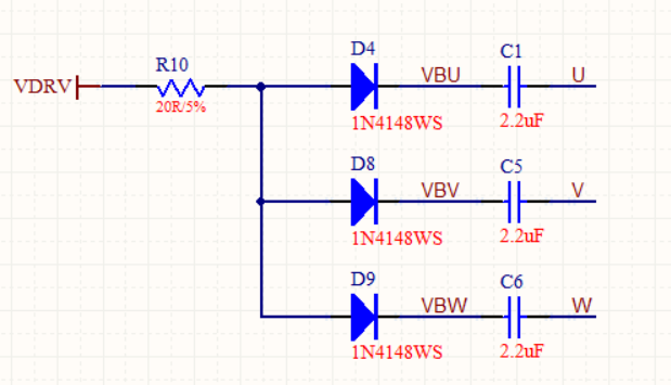 由芯片內(nèi)部輸出VDRV的12V電壓,給到自舉電路部分,讓上橋驅(qū)動(dòng)電壓抬升,以便可以控制上橋。