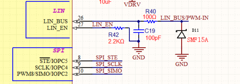外部輸入PWM/LIN信號(hào),通過(guò)芯片內(nèi)部集成的LIN模塊實(shí)現(xiàn)PWM/LIN通訊反饋。