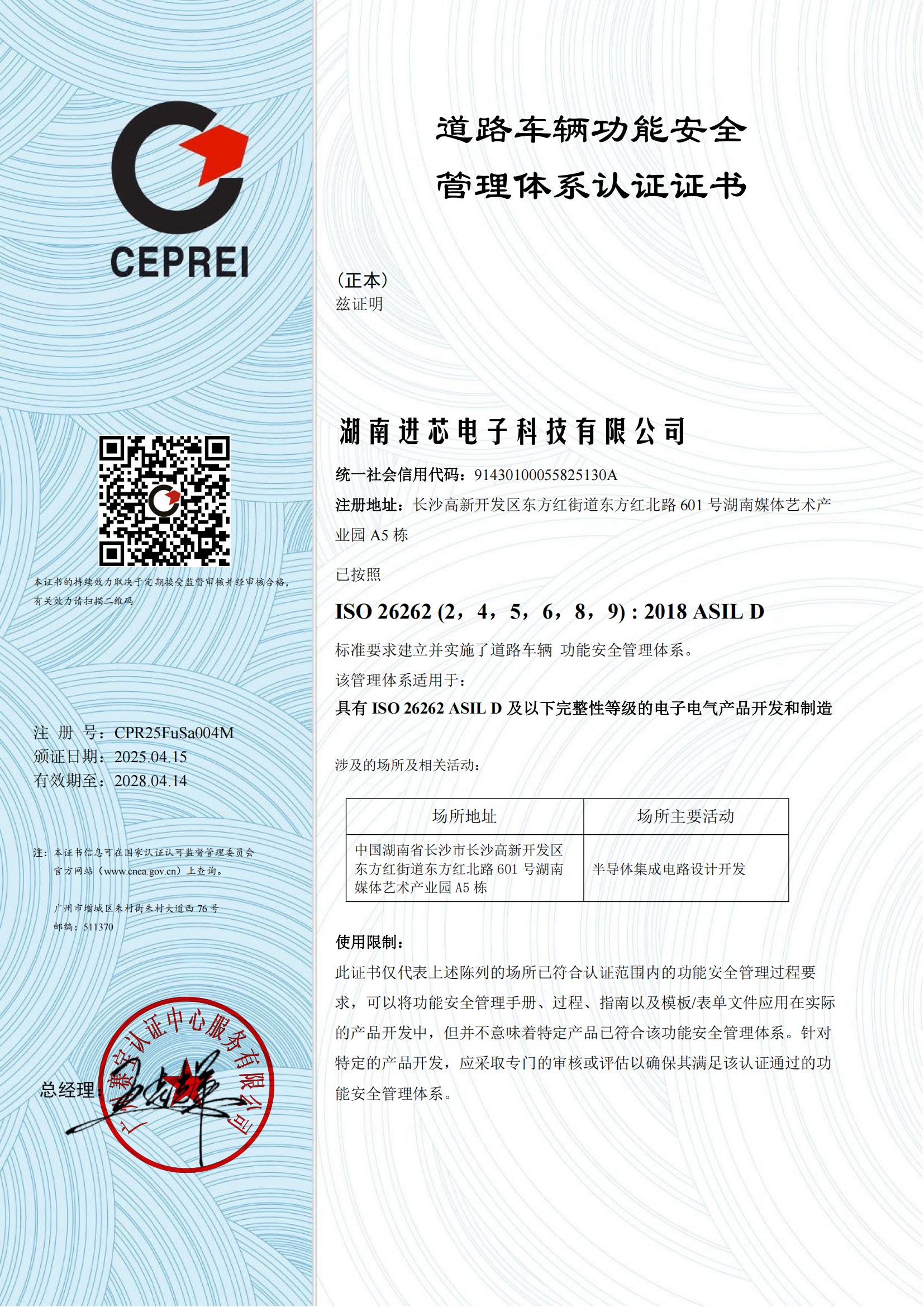 近日,進(jìn)芯電子成功獲頒“ISO 26262 道路車輛功能安全管理體系認(rèn)證證書”,此次認(rèn)證標(biāo)志著進(jìn)芯電子在功能安全管理體系方面達(dá)到了全球公認(rèn)的標(biāo)準(zhǔn)。
