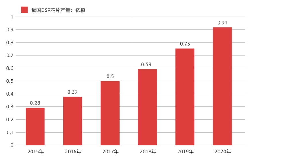 數(shù)據(jù)顯示,2020年我國DSP芯片市場規(guī)模達到136.92億元,需求量達到34.15億顆。而國內(nèi)DSP芯片產(chǎn)量,到2020年,達到0.91億顆,雖然相比2015年的0.28億顆,翻了大約3倍之多,但是仍然與龐大的市場規(guī)模和需求量形成巨大反差,體現(xiàn)出了強勁的增長潛力和迫切的增長需要。