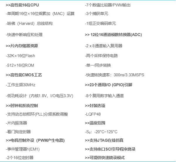 ADP16x器件提供增強型DSP架構設計,以低成本實現(xiàn)低功耗和高性能處理能力。為數(shù)字電機和運動控制應用而優(yōu)化的幾種高級外設已經(jīng)被集成,以提供一個真正的單芯片DSP控制器。與現(xiàn)有的DSP控制器設備代碼兼容時,ADP16x提供更高的處理性能和更高水平的外設集成。