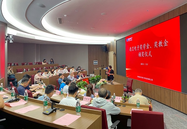 2023年5月16日,湖南大學(xué)“進(jìn)芯電子”獎(jiǎng)學(xué)金頒獎(jiǎng)儀式在進(jìn)芯電子總部大樓舉行。湖南進(jìn)芯電子科技有限公司董事長黃嵩人,湖南進(jìn)芯電子科技有限公司副總經(jīng)理周良業(yè),湖南大學(xué)發(fā)展聯(lián)絡(luò)處處長、教育基金會(huì)秘書長鄧?yán)A,湖南大學(xué)物理與微電子科學(xué)學(xué)院原黨委書記、評獎(jiǎng)委員會(huì)主任曾云,湖南大學(xué)物理與微電子科學(xué)學(xué)院黨委副書記田銳,湖南大學(xué)物理與微電子科學(xué)學(xué)院副院長趙楚軍等學(xué)院領(lǐng)導(dǎo)以及獲獎(jiǎng)老師、學(xué)生參加此次會(huì)議。會(huì)議由湖南進(jìn)芯電子科技有限公司校企聯(lián)合實(shí)驗(yàn)室主任萬穎主持。
